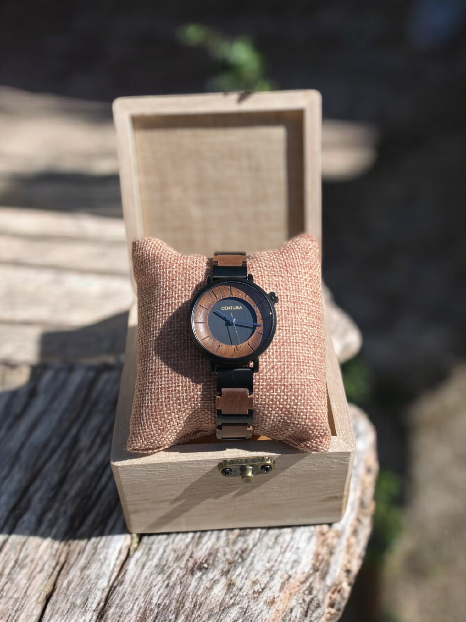 El modelo Litoral combina la fuerza del acero inoxidable con la calidez de la madera, creando un diseño elegante y moderno que refleja la esencia de la naturaleza y el mar. Su estilo minimalista resalta la belleza de lo simple, mientras que su resistencia al agua y movimiento japonés Miyota garantizan calidad y durabilidad para el uso diario.